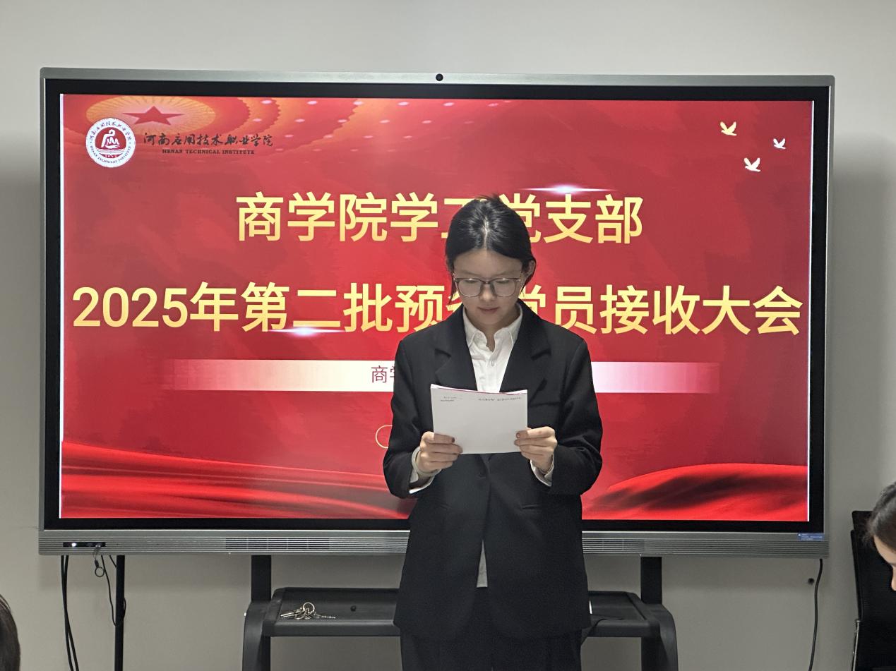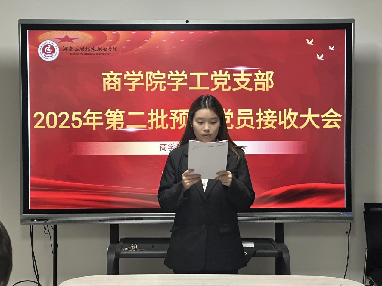 荆伟科对新接收的预备党员表示祝贺,并提出三点要求:一要强化理论武装,筑牢思想根基,持续深入学习党的创新理论;二要立足学工岗位,勇于担当作为,发挥先锋模范作用;三要严守纪律规矩,锤炼优良作风,以党员标准严格要求自己。新预备党员纷纷表态,将牢记入党誓词,践行初心使命,争取早日成为合格共产党员。
