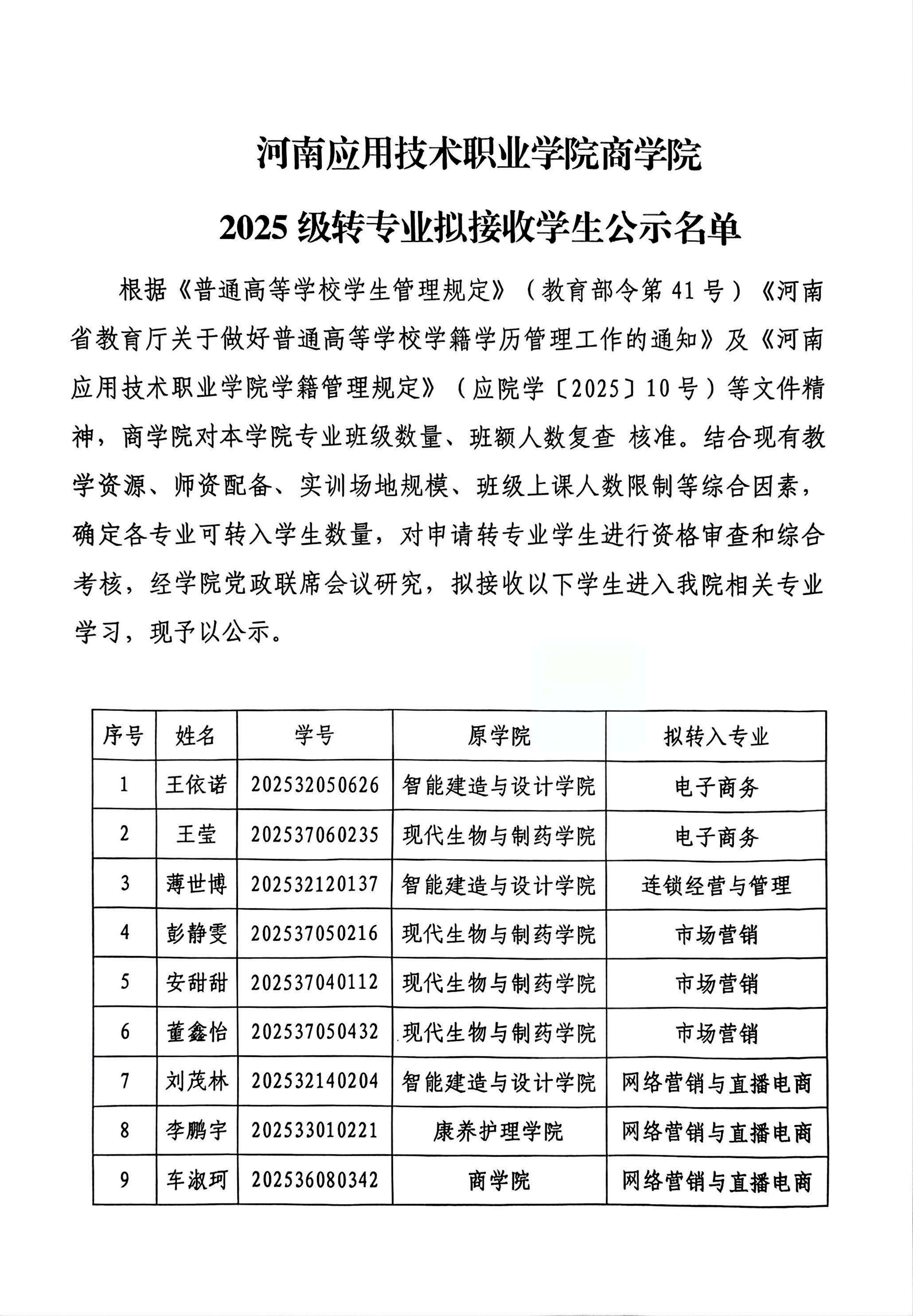 sunbetsunbet 2025级转专业拟接收学生公示名单