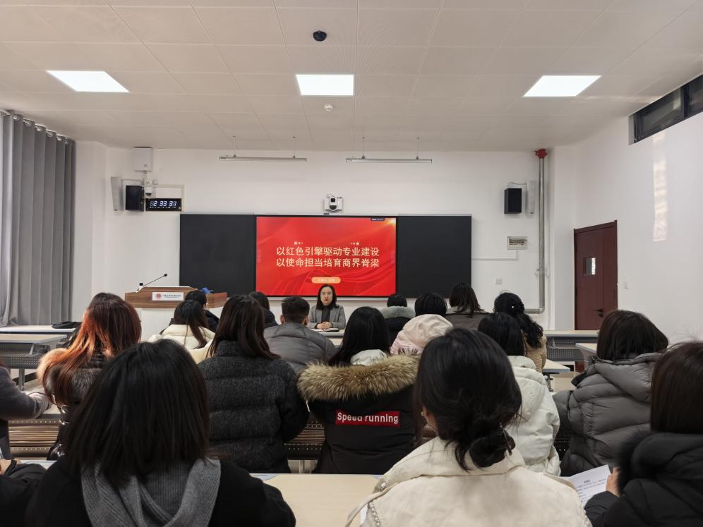 授课过程中,王珂结合学院发展实际与商科教育实践特点,就红色教育与专业建设协同推进提出具体要求。她鼓励全体教师立足教学岗位,深耕课程改革,强化实践育人,通过校企协同、实践平台搭建等务实举措,把家国情怀、诚信担当等红色素养融入育人全过程,助力学生成长为兼具专业功底与社会责任感的商业人才。