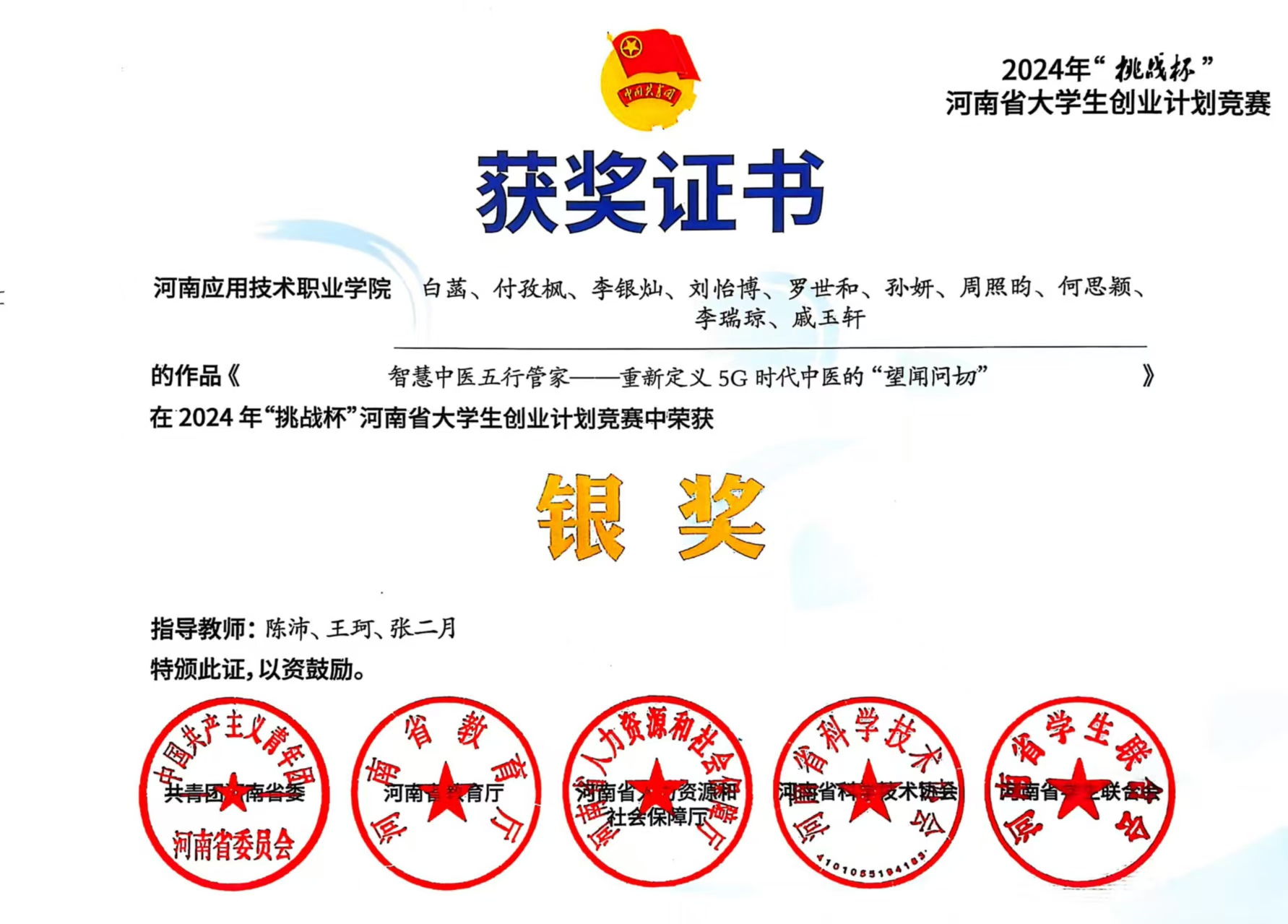 在创新创业与职业技能竞赛的赛道上,白菡始终以“立足实际、解决问题”为导向,勇于跨界探索、突破自我,凭借扎实的专业知识与创新思维屡获佳绩。2024年暑假,为备战“挑战杯”河南省大学生创业计划竞赛,她主动放弃假期休息,与团队成员留校打磨《智慧中医五行管家——重新定义5G时代中医的“望闻问切”》项目。作为核心成员,她结合物流专业的流程优化思维与中医健康管理的实际需求,先通过查阅行业文献、分析中医健康服务市场报告,明确项目的市场定位;随后走进社区卫生服务中心、中医馆,与执业医师、就诊患者面对面交流,收集多条关于中医诊疗流程、健康管理需求的真实反馈。她将这些多渠道收集的信息分类梳理,结合物流行业的供应链管理逻辑,优化项目的服务流程与运营模式,最终助力团队凭借贴合市场需求的创新思路斩获省级银奖。