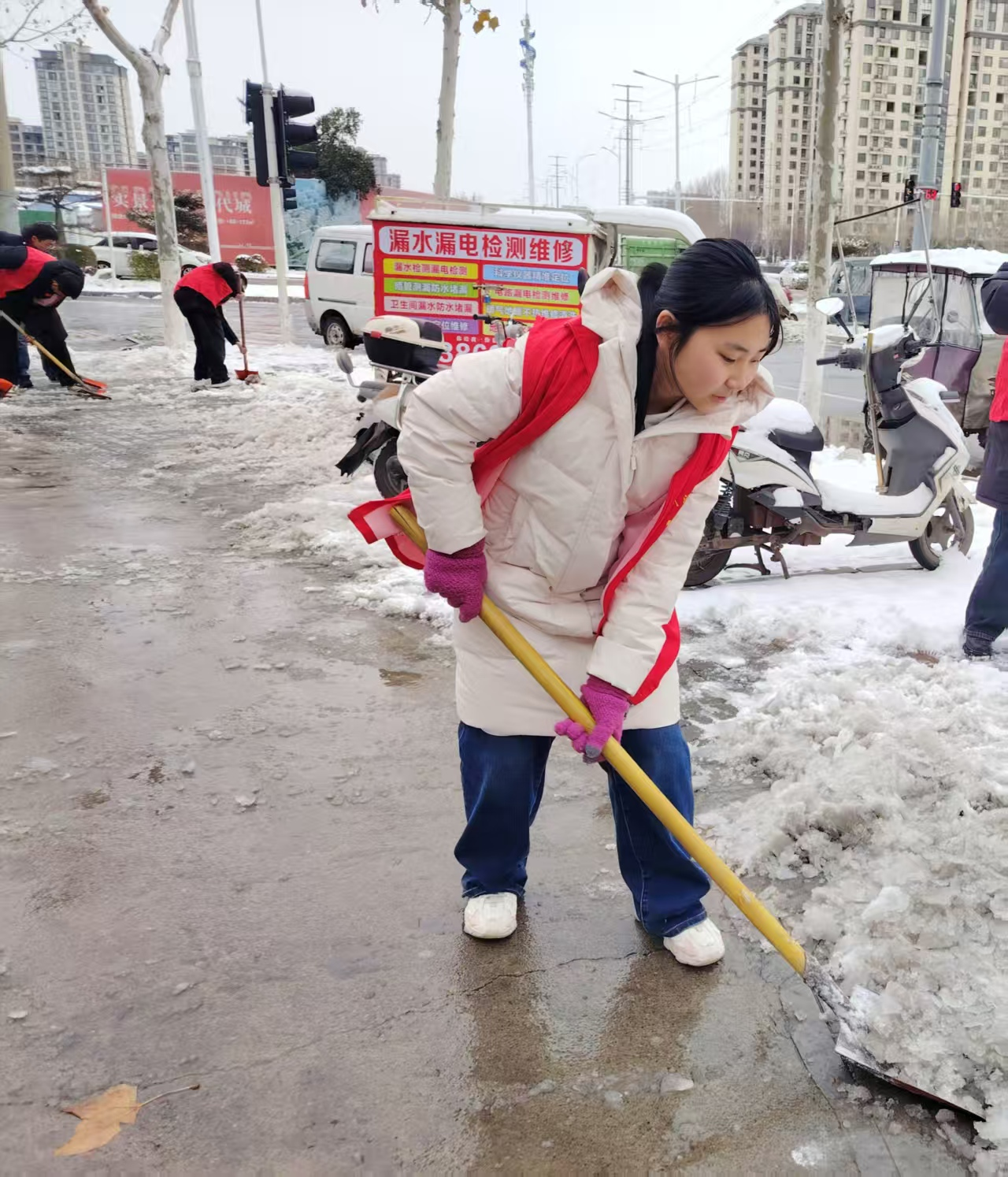 而铲雪的经历,则是一种更直接的“落地”。寒风里,铁锹与地面的摩擦声格外清晰,呼出的白气很快凝在睫毛上。手掌磨得发红发热,但看着大家齐心协力清出的一条干净小路,心里是暖的、踏实的。这劳动不再是一项任务,它连接着早起赶集的大爷、着急上学的孩子,连接着街道平平安安、顺畅运转的朴素愿望。
