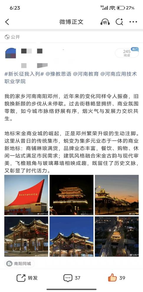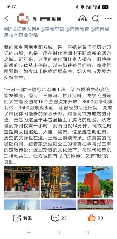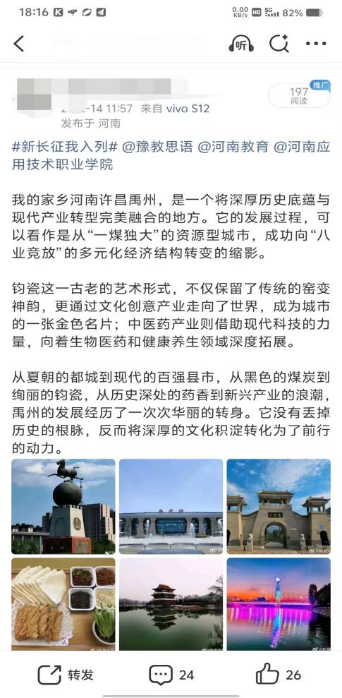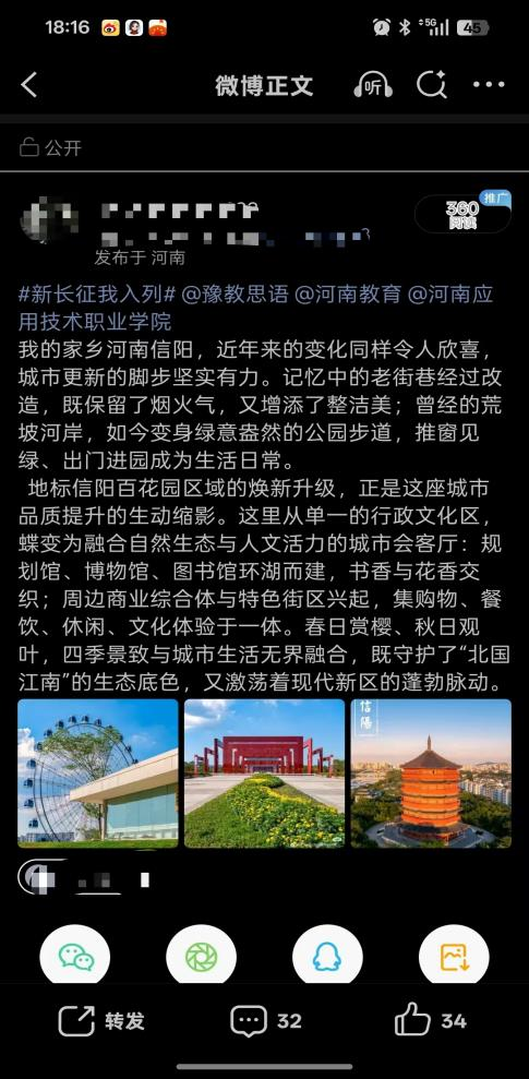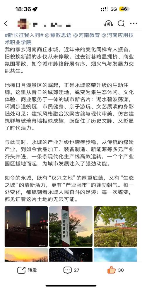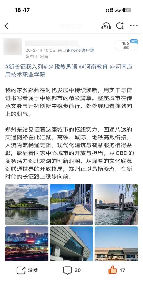 山河壮丽,岁月如歌。为引导商科学子在躬身实践中探寻中原发展的时代脉搏,将爱国情、强国志、报国行自觉融入新时代新征程,sunbet精心组织开展了“牢记嘱托践使命 行走中原看巨变”主题思政教育实践活动。商院学子们积极利用网络平台,参与“青春共行:看中原新变”话题互动,用鲜活的影像与真挚的文字,描绘出一幅幅中原大地日新月异的生动画卷,让青春的正能量在网络空间澎湃激荡。