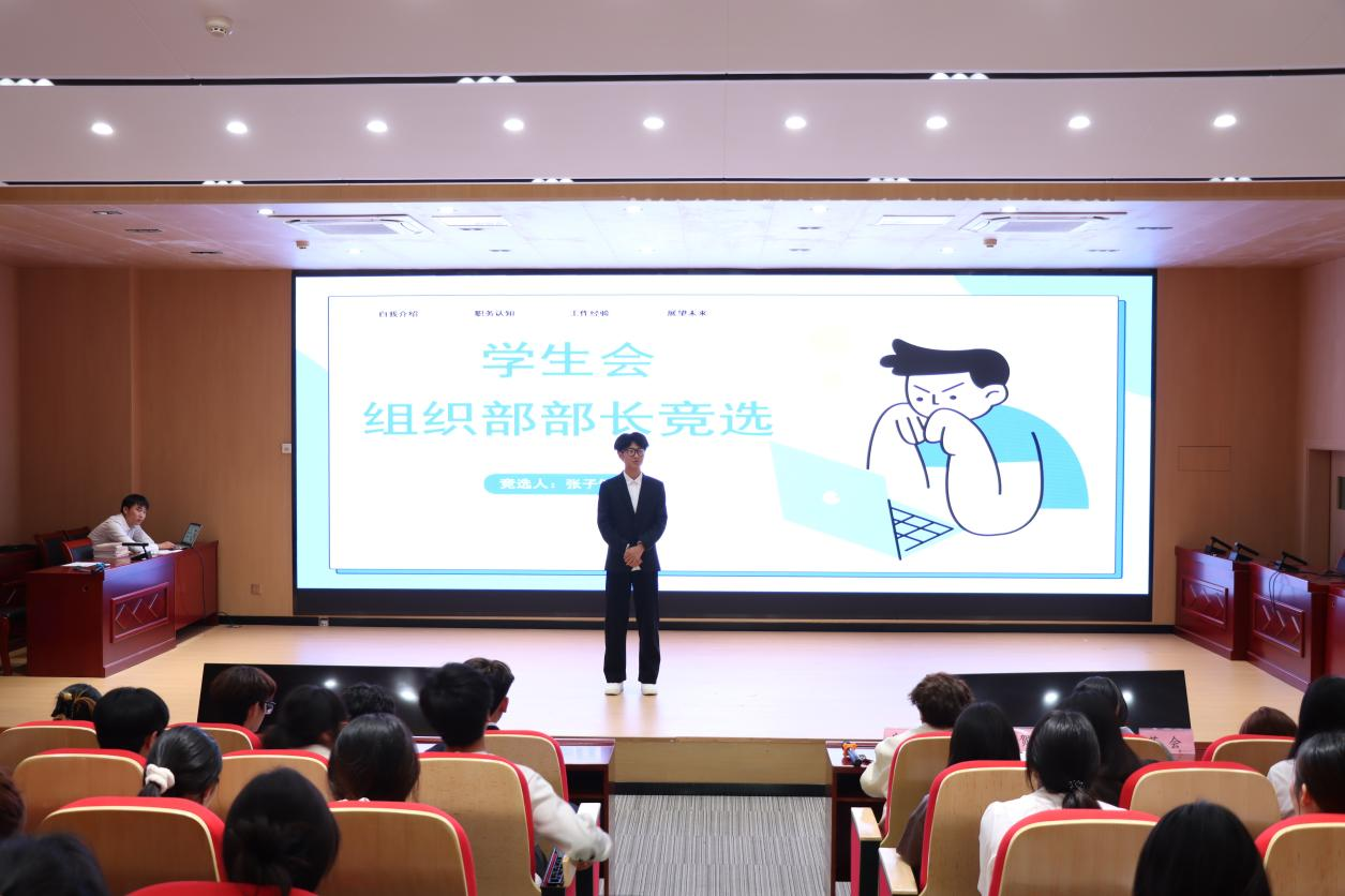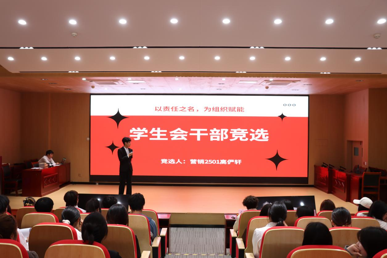 竞选环节中,新一届学生会参选人员依次登台,自信从容、各抒己见。他们结合自身特长与优势,畅谈对学生会工作的独到思考与规划,从强化部门协同联动、打破工作壁垒,到创新活动载体、丰富活动内涵,每一项具体设想都凝聚着对服务同学的赤诚,彰显着为学院发展添砖加瓦的坚定决心。