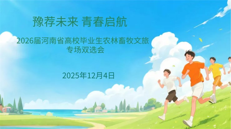 由河南省教育厅主办,河南农业大学、河南牧业经济学院、河南财政金融学院、河南省大中专学生就业服务中心联合承办的“豫荐未来 青春启航”2026届河南省高校毕业生农林畜牧文旅专场双选会,将于12月4日(周四)14:00在河南省大学生就业创业综合服务基地(郑州市郑东新区相济路81号)准时举行,一站式覆盖行业顶尖名企,精准匹配你的职业梦想!